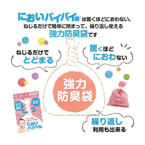 臭わない袋 中身が見える防臭袋 赤ちゃんおむつ用【M・袋】60枚 においバイバイ袋 におわない袋 ゴミ袋 ベビー うんち におい 対策 消臭袋 |