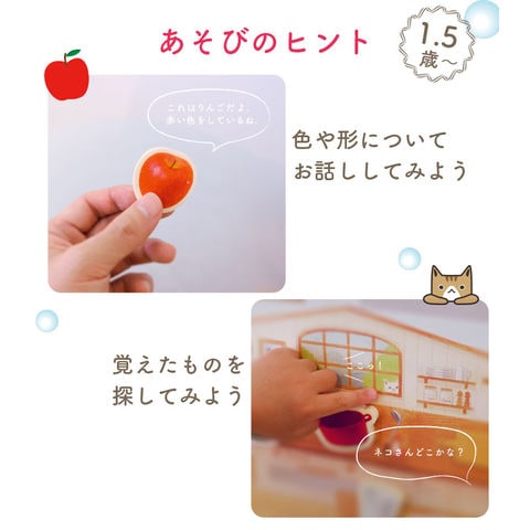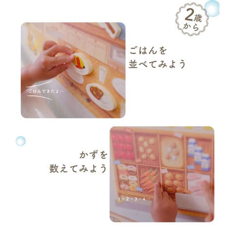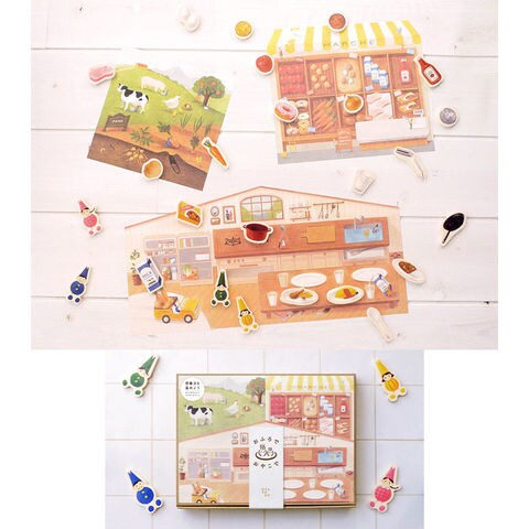 | セット内容 | ポスター3種(お店・おうち・牧場) パーツ26種 お片づけ納ネット袋 あそび方リーフレット |
