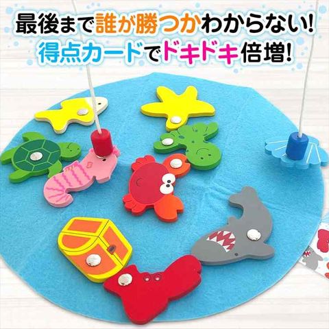 | 商品説明 | 最後まで誰が勝つかわからない!得点カードでドキドキ倍増! 1.得点カードを選んで、裏に置きます。カードは最後にめくります。 2.好きな魚を順番に釣ります。 3.全部の魚を釣ったら、カードを表にして釣った魚の点数を計算します。 ★カードの点数は、それぞれ異なります。 |