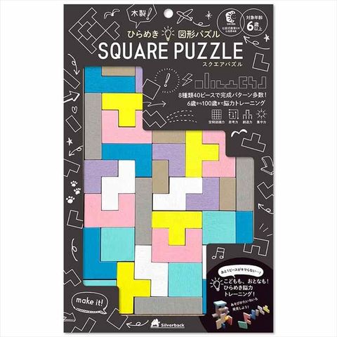 | SQUARE PAZZLE Silverback シルバーバック 木製 ひらめき図形パズル 8種類40ピース 6歳以上 図形あそび 解説書つき |