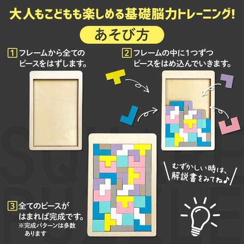 SQUARE PAZZLE Silverback シルバーバック 木製 ひらめき図形パズル 8種類40ピース 6歳以上 図形あそび 解説書つき