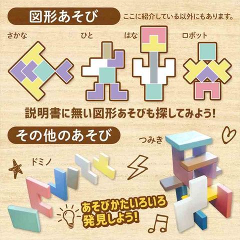 | 商品説明 | 8種類40ピースで完成パターン多数! 6歳から100歳まで基礎能力トレーニング! 七田式教育主宰 七田厚推薦 想像する・考える・手を動かす 図形パズル |