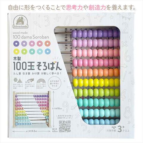 100だまそろばん パステル Silverback シルバーバック 木製 百玉そろばん カラフル たし算 ひき算 かけ算 数字 おもちゃ 知育