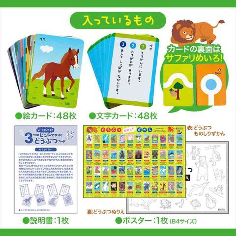 3つのヒントで学ぶ!どうぶつカード 学校 小学校 小学生 園児 幼児 子供 教育 発育 発達 楽しく学べる 遊び 学習 知育玩具 子ども 親子で遊ぶ