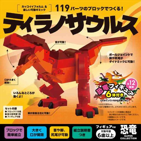 | 商品説明 | 大きく口が開閉!首も可動!脚も前後左右に可動!ポールジョイントで脚や尻尾がダイナミックに動くからおもしろい!いろんなところが動いて、つくってからも楽しめる!組立説明書がわかりやすいので、はじめてでも迷わずにつくれます。 |