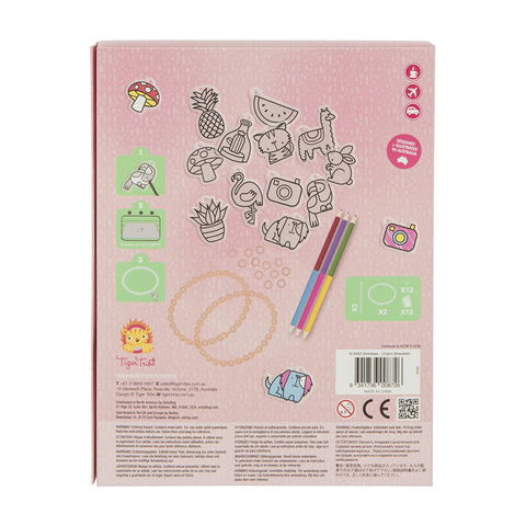 | 商品説明 | かわいいジャングルの動物たちのホイルアートセットです。6色のホイルで綺麗な絵柄を作る事が出来ます。テンプレートを剥がして糊面を出し、ホイルの光沢面を上にして指で強くこすってホイルを貼り付けます。ゆっくりとホイルを剥がせば、綺麗な絵柄がお子様でも簡単に作れます。ステンシルを使用してホイルに模様を貼りつけ、2枚目に別のホイルを貼り付けることも出来ます。本体に全てしまえるので持ち歩きもお片付けも簡単です。 |