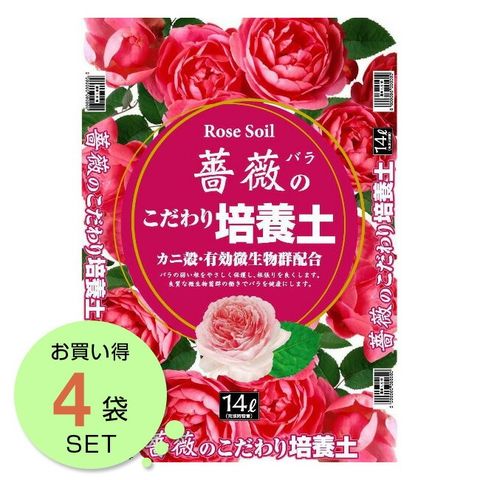 お徳用セット自然応用科学 薔薇のこだわり培養土 14L 1ケース 4袋入り<br> 培養土 バラまとめ買い ケース 販売 大容量 大量 たくさん 格安値引培養土 土 活性 有機 ばら 薔薇 月桃 専用<br>