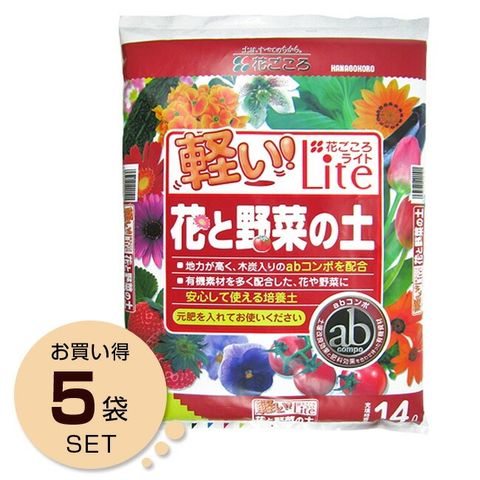 お徳用セット培養土 軽い!花ごころLite花と野菜の土 14L 5袋入り (花ごころ) <br>まとめ買い ケース 販売 大容量 大量 たくさん 格安 値引 ベランダ 寄せ植え ガーデニング 土 用土 専用 園芸 ガーデン 培養土 鉢の土<br>