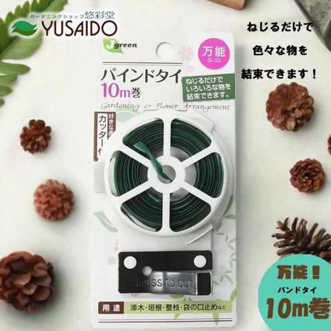 ジャステム バンドタイ 10m 万能 G-10<br>ビニタイ ビニールタイ 結束 バンド 緑 カッター付 添木 垣根 整枝 口止め 支柱 支え 茎 枝 枝もの ガーデニング 園芸 プランター 鉢植え 植木鉢 庭 畑 花壇 使い易い 手芸 園芸用品 まとめる グリーン<br>