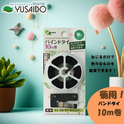 ジャステム バンドタイ 10m 菊用 BR-10<br>ビニタイ ビニールタイ 結束 バンド 緑 カッター付 添木 垣根 整枝 口止め 支柱 支え 茎 枝 枝もの ガーデニング 園芸 プランター 鉢植え 植木鉢 庭 畑 花壇 使い易い 手芸 園芸用品 まとめる グリーン<br>