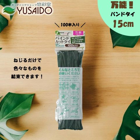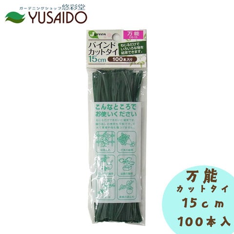 ジャステム バンドカットタイ 15cm 万能 CG-15 100本入り<br>ビニタイ ビニールタイ 結束 バンド 緑 添木 垣根 整枝 口止め 支柱 支え 茎 枝 枝もの ガーデニング 園芸 プランター 鉢植え 植木鉢 庭 畑 花壇 使い易い 手芸 まとめる グリーン<br>