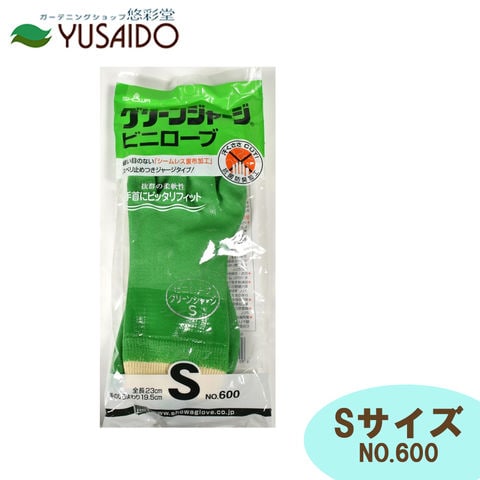 ショーワグローブ No.600 グリーンジャージビニローブ S<br>作業用手袋 ゴム手袋 手袋 農業 水産 漁業 清掃 サービス業 運輸 物流業 建築 設備 メンテナンス業<br>