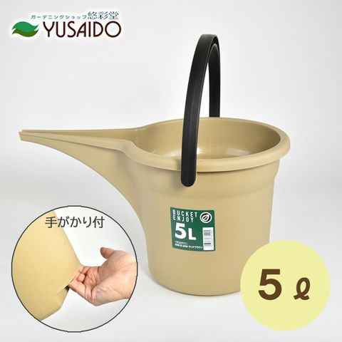 大和プラスチック 水差しバケツ 「BUCKET エンジョイ」 5L サンドブラウン<br>バケツ 水差し ジョウロ 小型 おしゃれ 便利 多用途 希釈 じょうろ 透明 シンプル かっこいい ピッチャー 桶 ミリタリー アースカラー ブラウン<br>