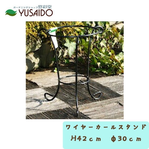 ワイヤーカールスタンドH42<br>フラワー スタンド ワイヤー リング アイアン 鉄製 花台 鉢受 ガーデニング 園芸 鉢植え 植木鉢 プランター<br>