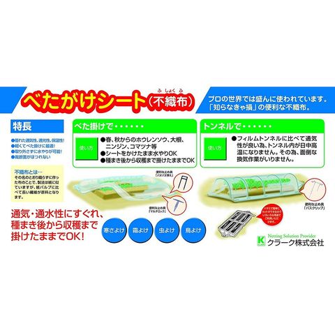 クラーク おてがる菜園用不織布 1.8×5m 透光率約80%<br>不織布 ベタ掛け シート 白 ふわふわ マルチ トンネル 栽培 霜よけ 虫よけ<br>