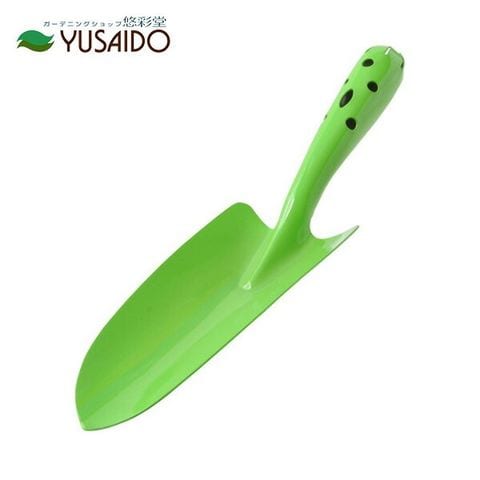 鉄製カラー共柄 補強付 移植ごて グリーン<br>スコップ いしょく ごて シャベル ショベル ビギナー 土入れ 基本 カラフル 安い 初め シンプル ガーデニング ガーデン 庭 花壇 植替え 植付 道具 黄 色 緑 青 ピンク<br>