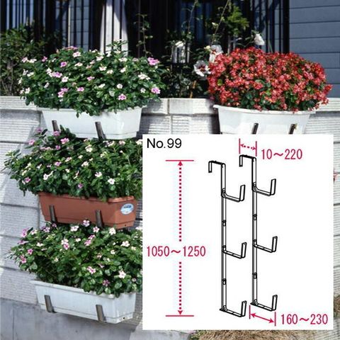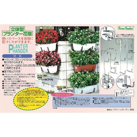 ◇GREEN GARDEN プランターハンガー ベン ステンレス 3段型 No.99 左右2本1組<br>プランター 鉢 植木鉢 ブロック塀 塀 ハンガー ラック フック ハンギング ステンレス ガーデニング ベランダ<br>