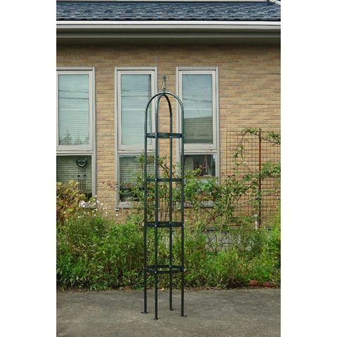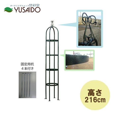 ◇GREEN GARDEN No.220 アイアン製 オベリスク エクセレント φ38×200(cm)<br> 庭 屋外 タワー つる ネット 支柱 あんどん タワー 筒 柱 塀 誘引 バラ 薔薇 つる 植物 クレマチス スチール 鉄 朝顔 仕立て プランター 花壇 組立式 ブラック 国産<br>