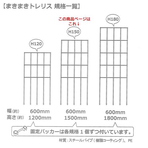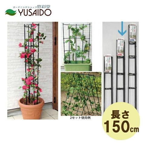 第一ビニール(daim) まきまきトレリス 60cm×150cm ブラック 3本セット<br> 庭 屋外 目隠し フェンス トレリス 柵 仕切り ネット パネル 支柱 あんどん オベリスク タワー 筒 柱 塀 壁 誘引 バラ 薔薇 つる 植物 クレマチス ゴーヤ 朝顔 daim<br>