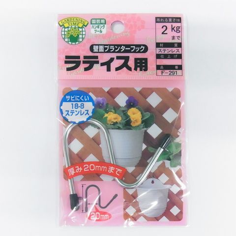 ニッサチェイン 壁面プランターフック ラティス用 F-291 サビにくいステンレス製 板厚20mmまで<br>ハンギング フック S字 ブロック塀 外塀 専用 鉢 プランター ウォール バスケット 壁 ネット フェンス 柵<br>