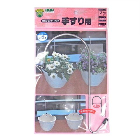 ニッサチェイン 壁面プランターフック 手すり用 F-539 サビにくいステンレス製 手すり太さ80mmまで<br>ハンギング フック S字 ブロック塀 外塀 専用 鉢 プランター ウォール バスケット 壁 ネット フェンス 柵<br>