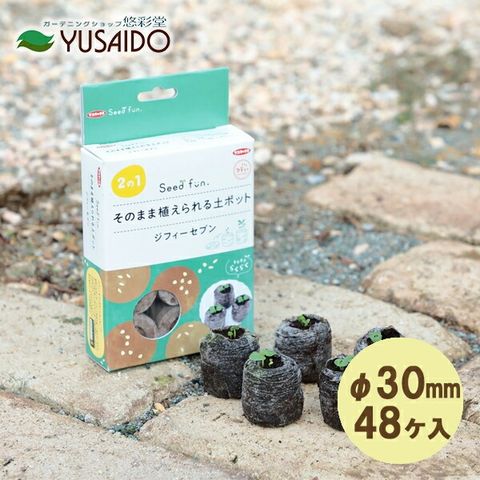 ジフィーセブン 直径30mm 48個入<br><br>タネまき 種まき 挿し木 挿し芽 さし木 葉差し 育苗 花壇苗 夏野菜 家庭菜園 播種 苗づくり 種床 ピートモス バーミキュライト ルートボール 定植 やり方 資材 専用 方法 土 培養土 用土 少量 初心者<br>