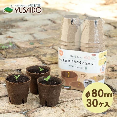 ジフィーポット丸型 8cm 30個入<br>播種 タネ 苗づくり 株づくり 差し穂 挿し木野 菜果樹 草花 パンジー ビオラ ジフィーセブン キュウリ エコ 再生 生分解性 土にかえる 分解 紙ポット 育種 株分け 2.5号<br>