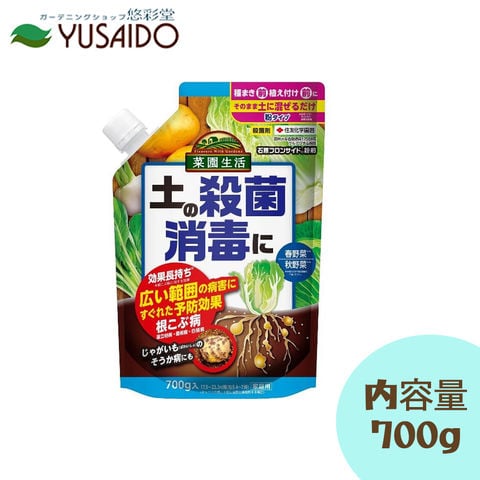 土に混ぜたり、株元に散布する(ネギ、ニラ、ラッカセイ)だけで、土の殺菌・消毒ができる土壌殺菌剤です。