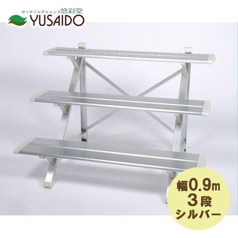 ◇Picaコーポレーション アルミフラワースタンド 巾90cm3段 FSA-K93S シルバー<BR>花台 ひな壇 縁台 階段 フラワースタンド アルミフラワースタンド 屋外 2段 おしゃれ シルバー スペース<br>
