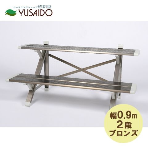 ◇Picaコーポレーション アルミフラワースタンド 巾90cm2段 FSA-K92BL ライトブロンズ<BR>花台 ひな壇 縁台 階段 フラワースタンド アルミフラワースタンド 屋外 2段 おしゃれ ライトブロンズ スペース<br>