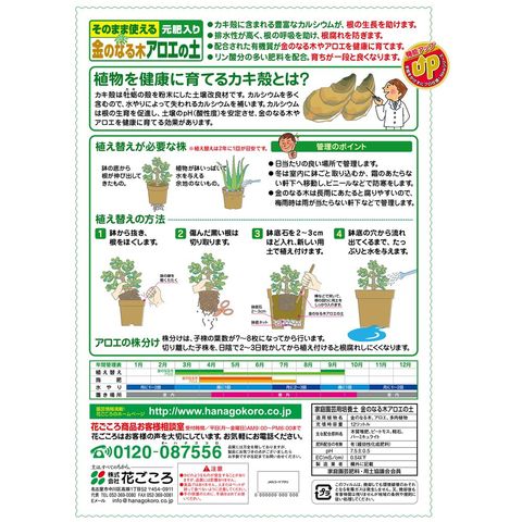 土壌のpH(酸性度)を安定させ、金のなる木やアロエを健康に育てる効果があります。