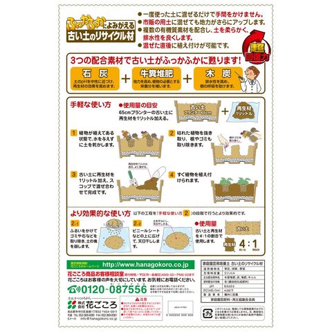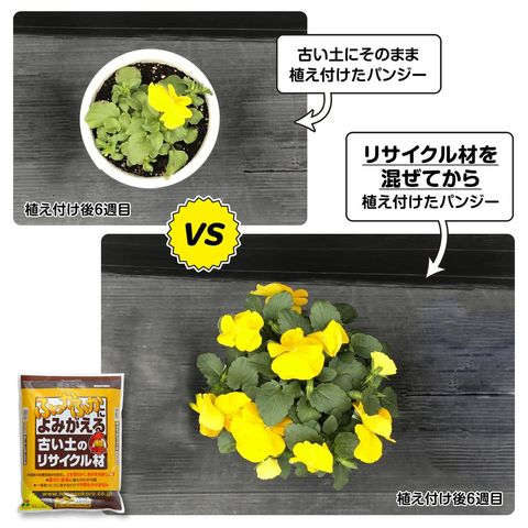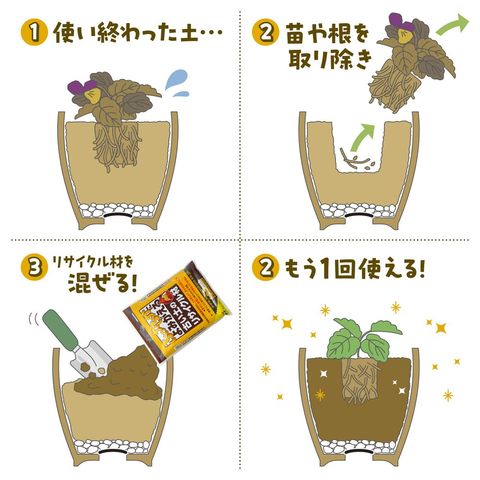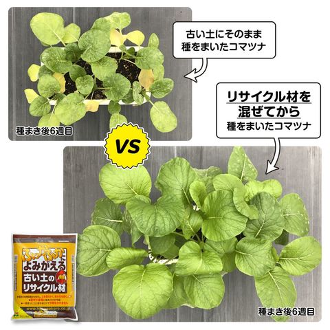 (より効果的な使い方は、古い土4:リサイクル材1の割合で使用します。)