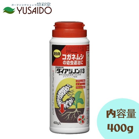 | 使用方法 | 植え付け時・播種時に土に混ぜます。 適用例) トマト・ピーマン・とうがらし類:ケラ、ネキリムシ類、コガネムシ類幼虫・6~8g/m2・植付時1回 豆類(種実):ケラ・タネバエ・コガネムシ類幼虫・6~8g/m2・は種時 ※適用作物・使用量は一例です。詳しくは商品ページ画像および製品に添付の使用方法をお読みください |