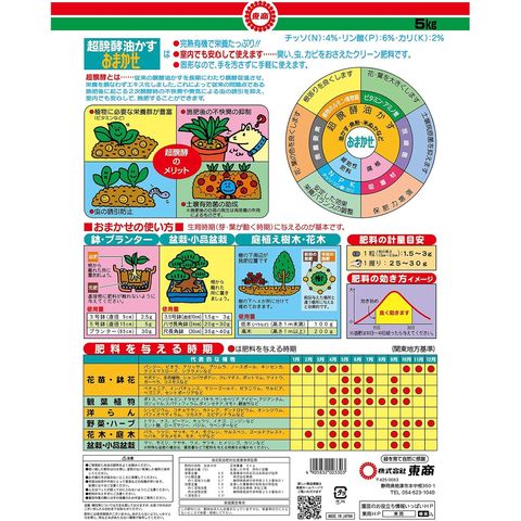 | 成分比 | チッ素(N):リン酸(P):カリ(K):マグネシウム(Mg)=4:6:2:0.21 |