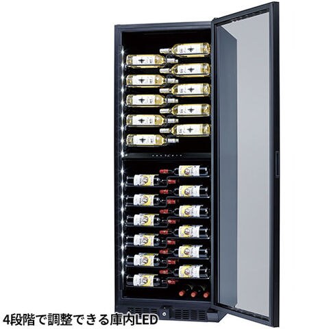 | 収納本数:131本(上段60本/下段71本) 設定可能温度:5℃~22℃(外気温25℃の場合) 推奨温度:7℃~18℃ 定格消費電力:160w(最大) 年間消費電力量:235kw/年 冷却方式:コンプレッサー式(インバーター) 庫内灯:2色切替LED(白色・電球色)4段階調光機能付 電源コード:2.2m 放熱スペース:側面・背面・天面 各30mm 付属品:スライドラック×11、鍵 |