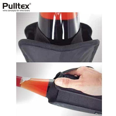 | 片手で簡単にサーヴィングできるよう手を入れるバンドが付いたハンドグリップ式。ボトルはネック部と底面部でしっかり固定できるので作業も安全かつ簡単に行えます。 |