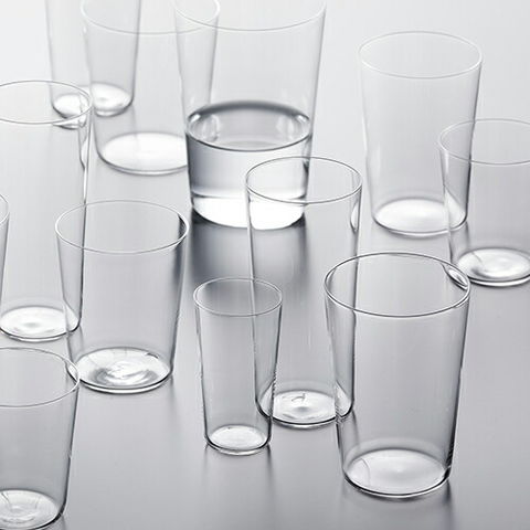 | 極薄の手作りグラス。飲み物をそのまま持っているような不思議な感覚と口当たりの良さをお楽しみください。ご家庭サイズは12oz、10oz、8ozあたりがおすすめです。 |