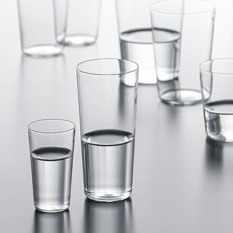 | 極薄の手作りグラス。飲み物をそのまま持っているような不思議な感覚と口当たりの良さをお楽しみください。ご家庭サイズは12oz、10oz、8ozあたりがおすすめです。 |