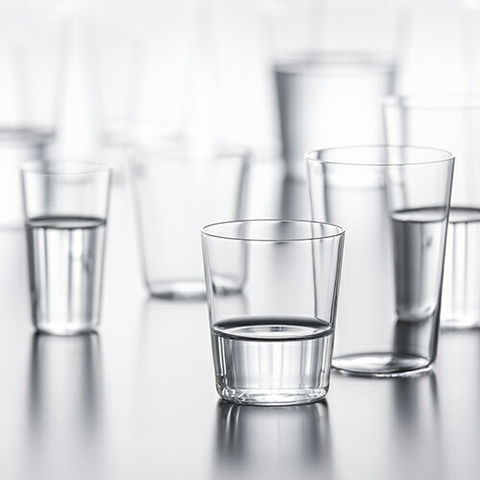 | 極薄の手作りグラス。飲み物をそのまま持っているような不思議な感覚と口当たりの良さをお楽しみください。ご家庭サイズは12oz、10oz、8ozあたりがおすすめです。 |