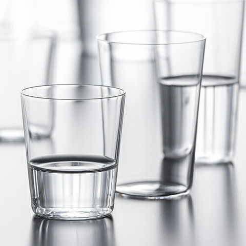 | 極薄の手作りグラス。飲み物をそのまま持っているような不思議な感覚と口当たりの良さをお楽しみください。ご家庭サイズは12oz、10oz、8ozあたりがおすすめです。 |