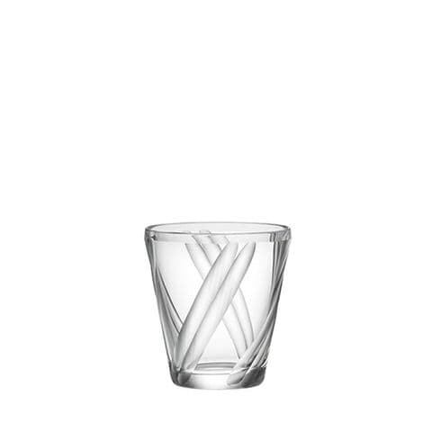 | ずしりと心地よい重みの厚手のグラスに、大胆なデザインのカットが施されています。 |