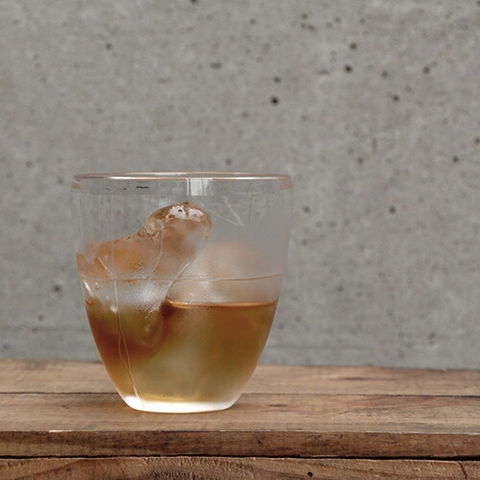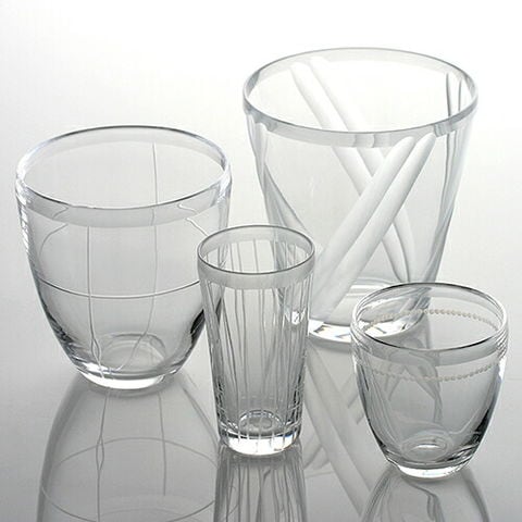 | ずしりと心地よい重みの厚手のグラスに、大胆なデザインのカットが施されています。 |