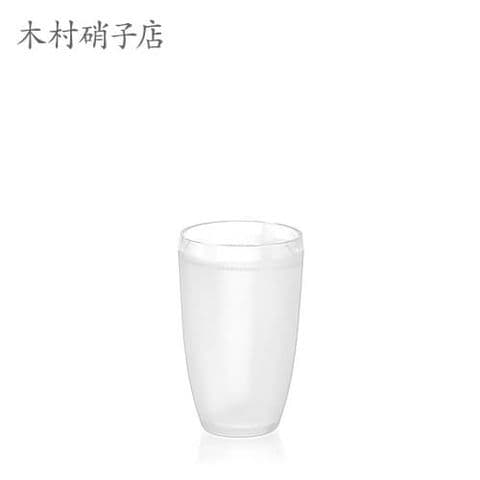 | ずしりと心地よい重みの厚手のグラス。口元はカットと磨きで口当たり良く。表面はサンドブラスト加工の後さらに酸洗いという加工を経て、しっとりとした質感を再現しています。 |