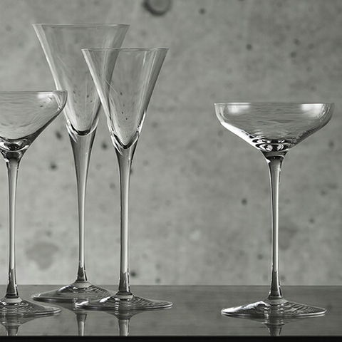 | オーソドックスなデザインでまとめたシンプルなシリーズ。日本の職人によるハンドメイドのカクテルグラスです。 |