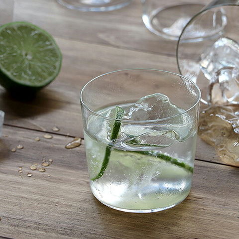 マシンメイドのコップたちはいたってフツーで日々気楽に使える飾りっ気のないコップです。ラフな作りではありつつ底まで薄く、シンプルで飽きのこないデザインになっていますのでデイリーユースやカジュアルなレストランで。