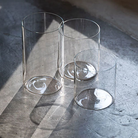 | ストンとした筒状のシンプルな形のマシンメイドグラス。底の厚みが薄いので全体に薄い印象を受けます。 |