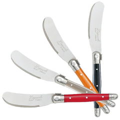 200年以上の歴史を誇るヨーロッパでも有数の刃物生産地ティエール(フランス)。1920年ピエール・デュポが小さな工房から創業し、その息子ジャン・デュポの代で大きく成長し、その名がブランド名となっています。ジャン・デュポライヨールナイフの特徴は比較的重厚なデザインで高価格のライヨールナイフのイメージを一新する飛びぬけたコストパフォーマンスとテーブルコーディネートを楽しめるカジュアルで楽しい色使い&デザイン。まさに毎日の食卓で気軽にお使いいただけるフランスの「日常品」なのです。
