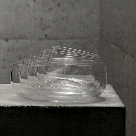 | デンマーク出身のガラス・陶器のデザイナー、トーラ・ウルップさんによるグラスシリーズ。薄手のボウルシリーズ5種。サイズ違いで集めれば入れ子にもなります。 |