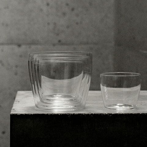 デンマーク出身のガラス・陶器のデザイナー、トーラ・ウルップさんによるグラスシリーズ。薄手のコップシリーズ5種。サイズ違いで集めれば入れ子にもなります。