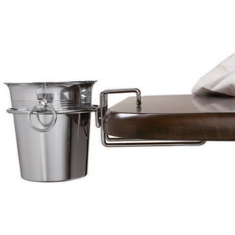 | テーブルサイドに1本用ワインクーラーをセットできるホルダーです。 テーブル厚約50mmまで幅広く対応。 収納時に場所を取らないセパレートタイプです。 |